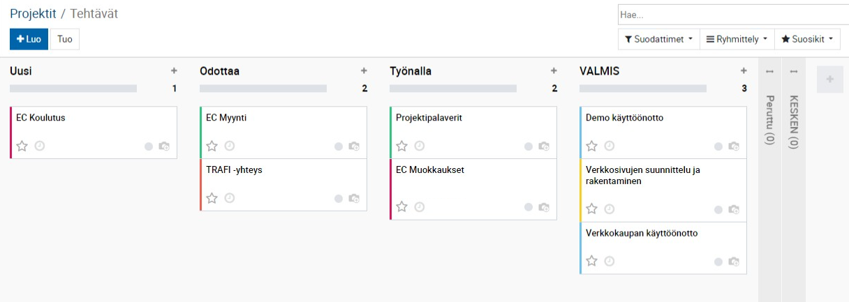 Projektinhallintaa voi laajentaa myös työmääräysten ja helpdesk-toiminnallisuuksien avulla.